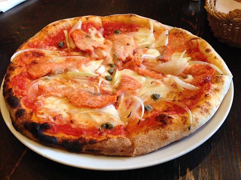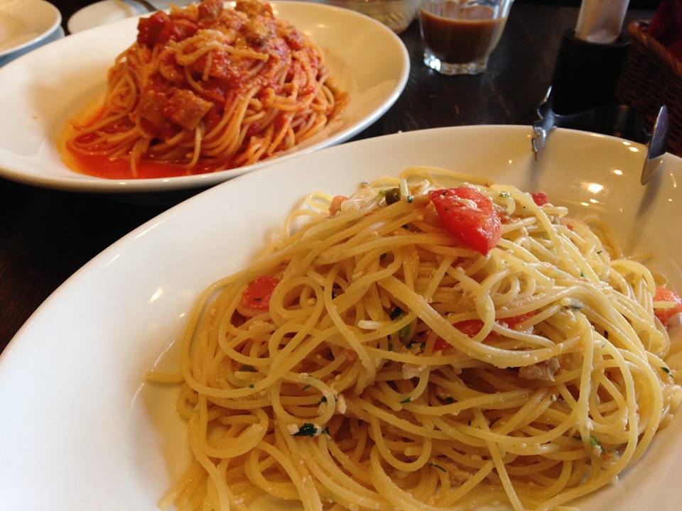 大盛り無料のパスタとか、熱々のサーモンピザ、それにドリンクバーのアセロラジュースがいい感じでした。
